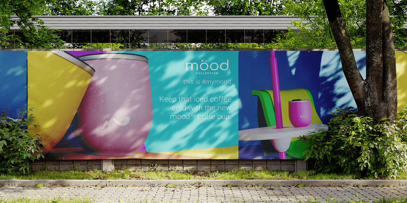 Snap Products Ltd expanded its Mood Collection, which previously featured vibrant bottles, notebooks, and pens, with the launch of a new 340 ml coffee cup designed to match the existing bottle colour range. The brief focused on creating a cohesive marketing theme and a series of social media assets that would seamlessly introduce the new product while maintaining the brand’s bold and energetic identity.